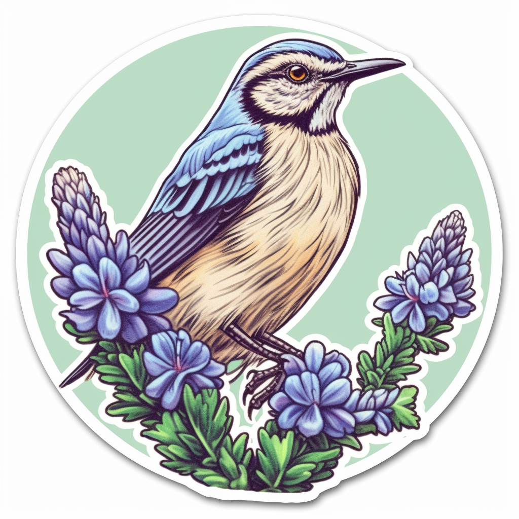 Texas Northern Mockingbird bird Bluebonnet flower Vinyl Decal Sticker for Car, Laptop, Tumbler and more # 009195