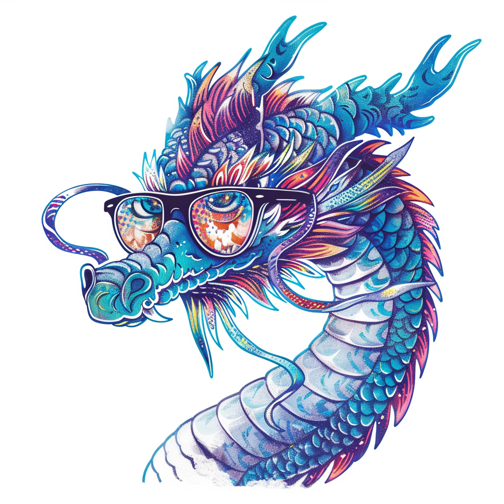 Dragon wearing sunglasses majestic Expressive surreal Vinyl Decal Sticker for Car, Laptop, Tumbler and more # F018937