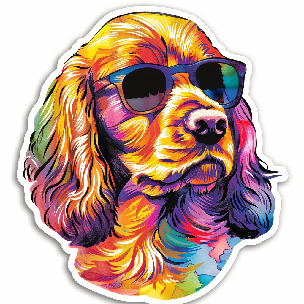 Cocker Spaniel Dog wearing sunglasses Expressive surreal Vinyl Decal Sticker for Car, Laptop, Tumbler and more # F020102-4" x 4"