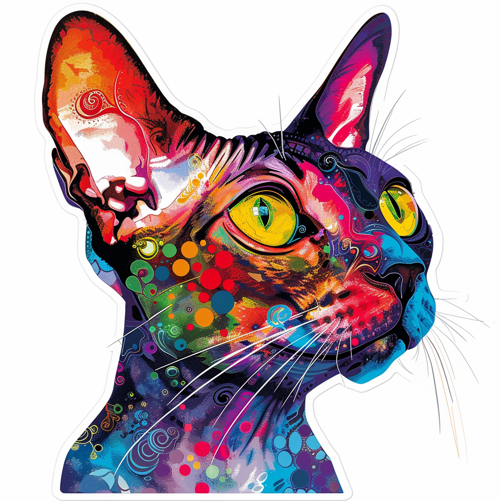 Adorable Cornish Rex Cat Expressive surreal Vinyl Decal Sticker for Car, Laptop, Tumbler and more # F021337-4" x 4"