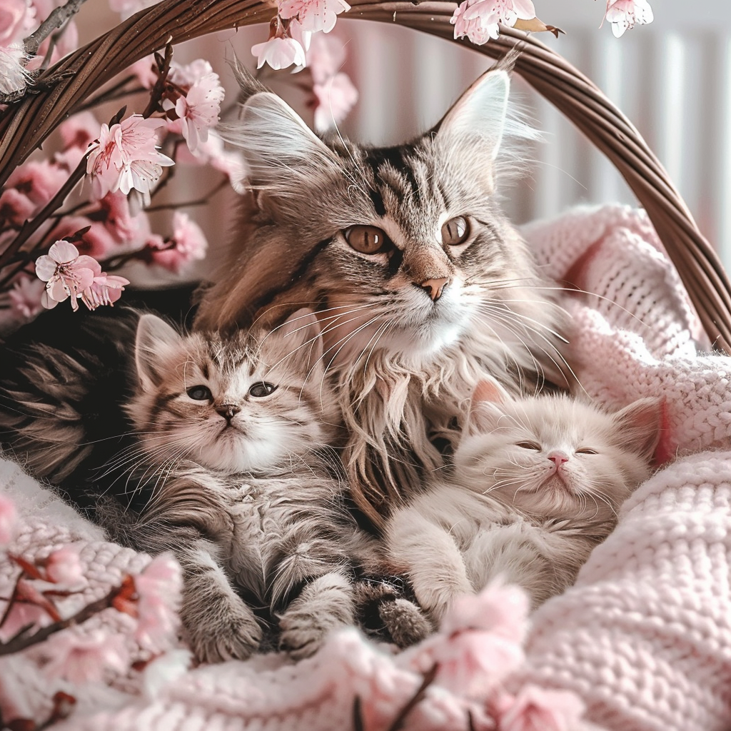 Adorable Cats in basket portrait Vinyl Decal Sticker for Car, Laptop, Tumbler and more # F021623-4" x 4"