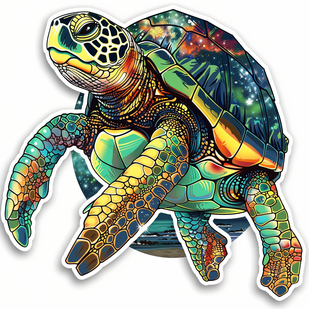 turtle majestic Expressive surreal Vinyl Decal Sticker for Car, Laptop, Tumbler and more # F021948-4" x 4"