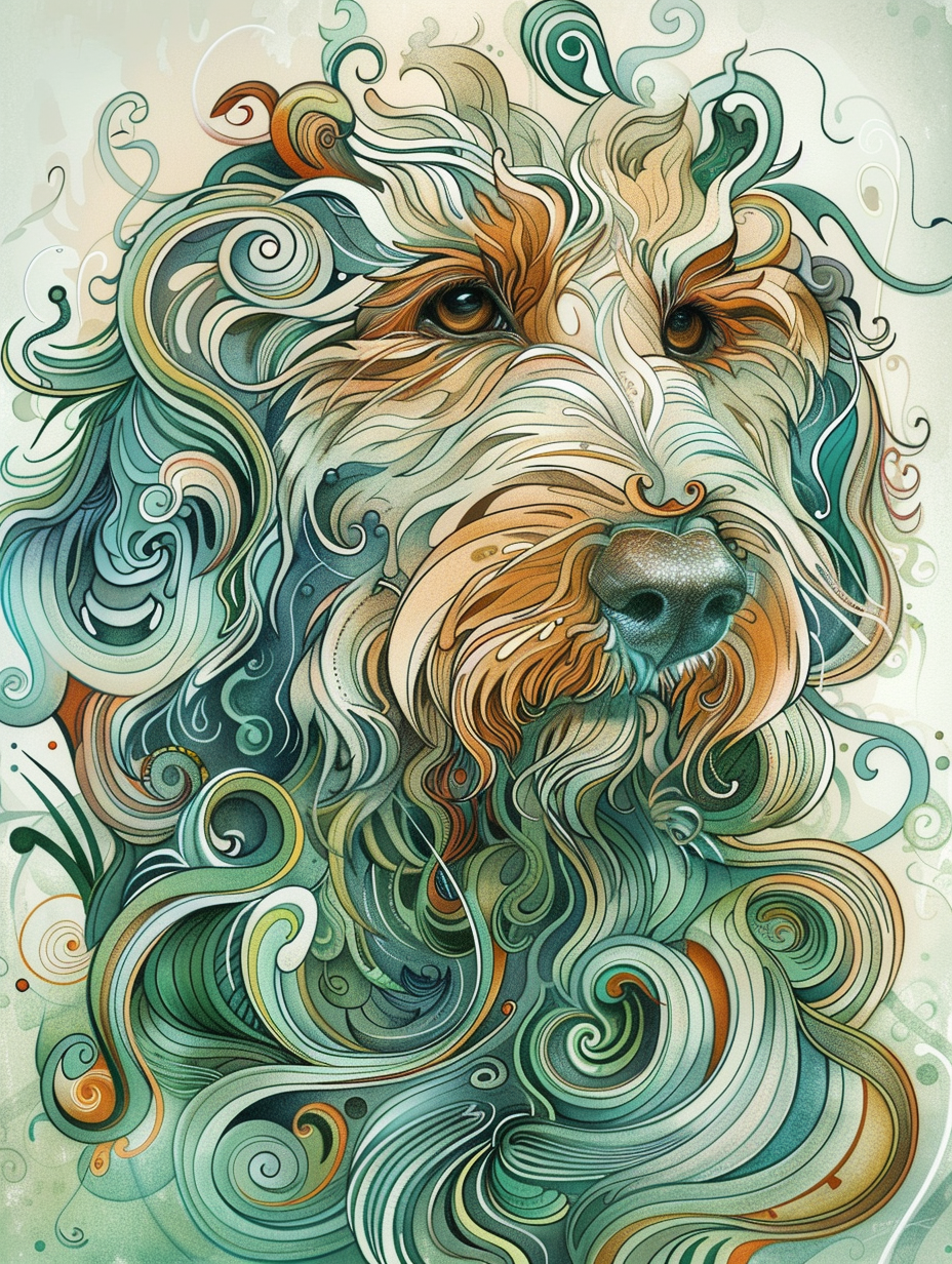 Poster of Goldendoodle dog Expressive surreal Poster # F024254