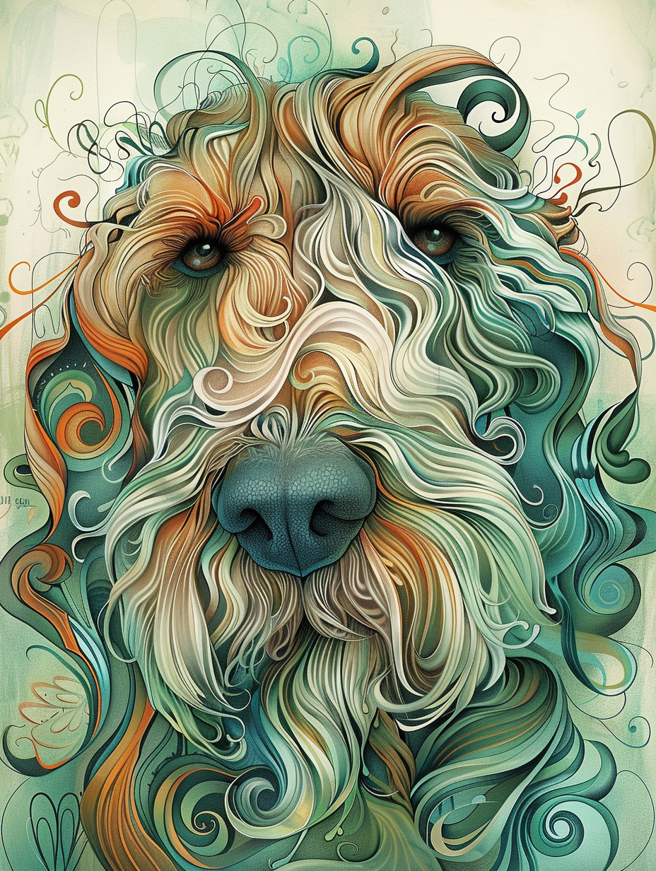 Poster of Goldendoodle dog Expressive surreal Poster # F024257