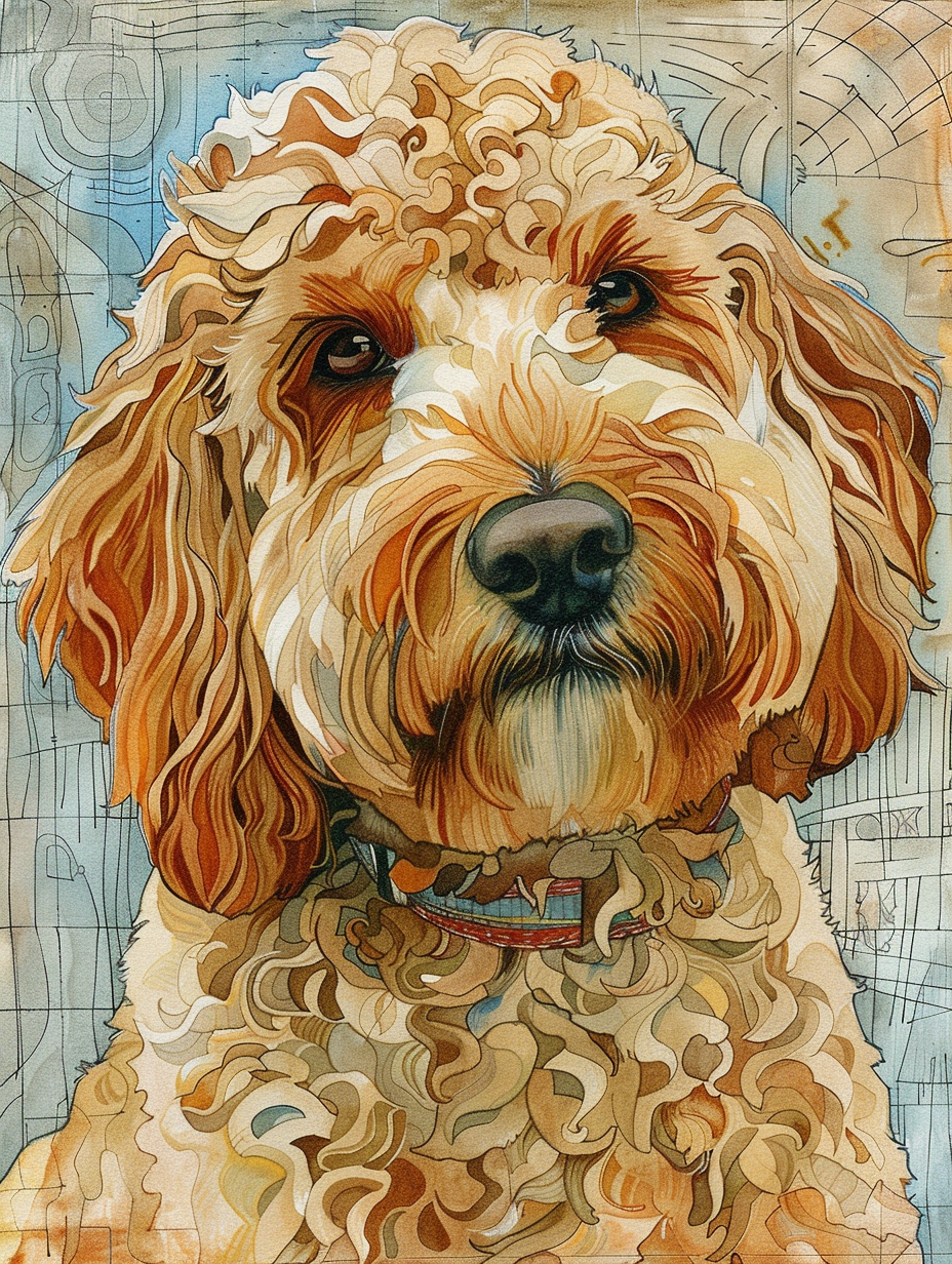 Poster of Goldendoodle dog Expressive surreal Poster # F024261
