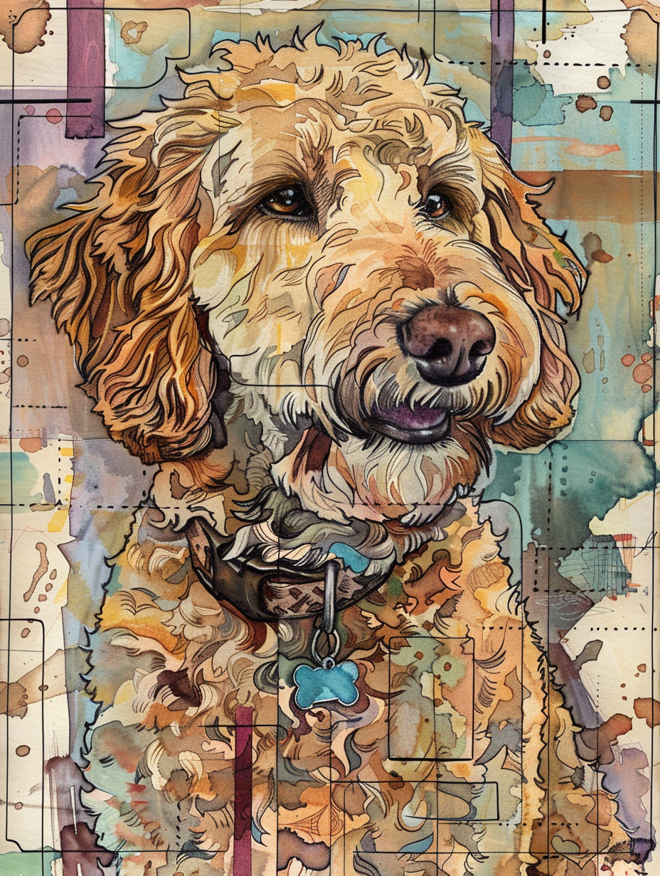 Poster of Goldendoodle dog Expressive surreal Poster # F024262