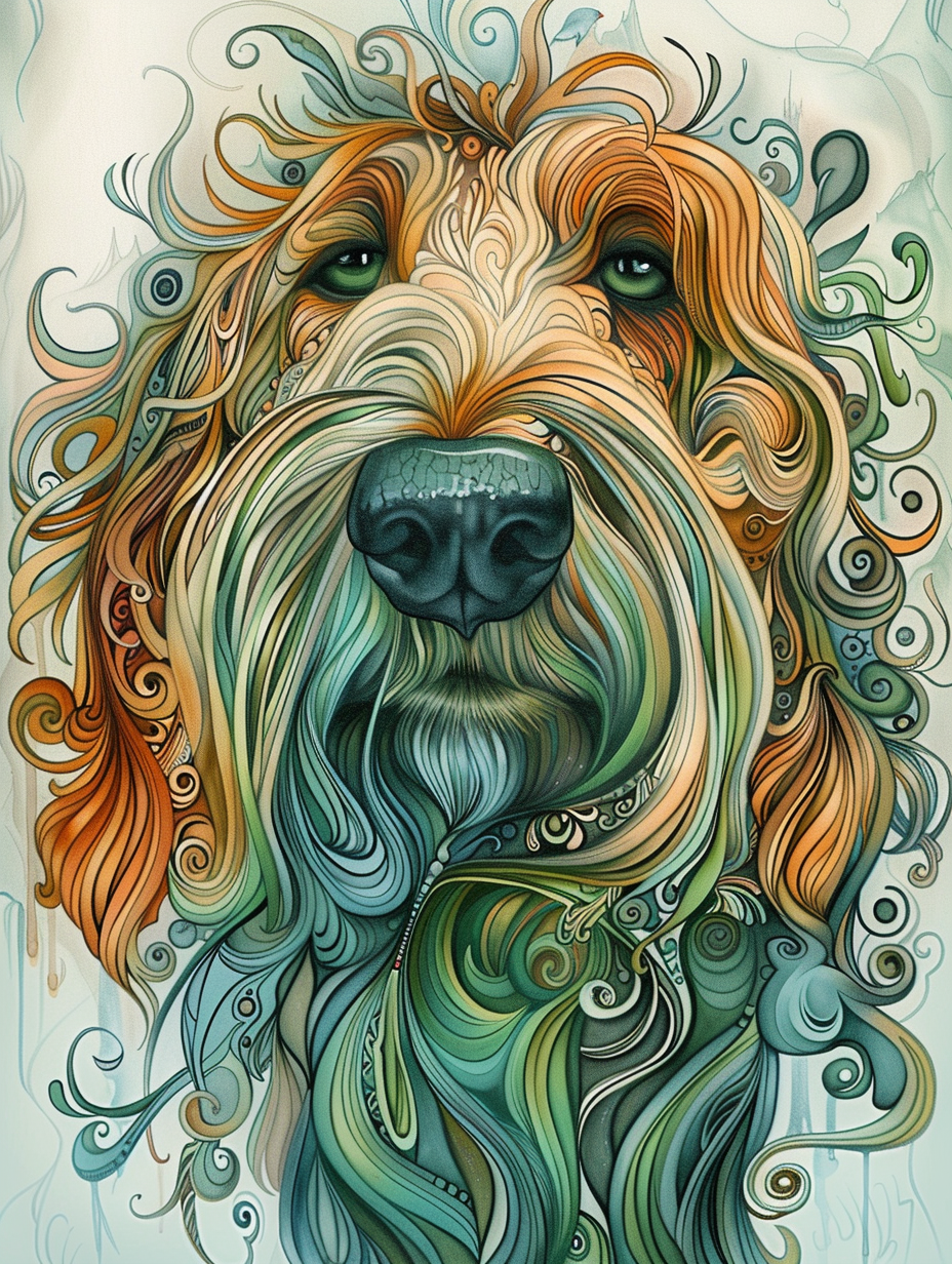 Poster of Goldendoodle dog Expressive surreal Poster # F024267
