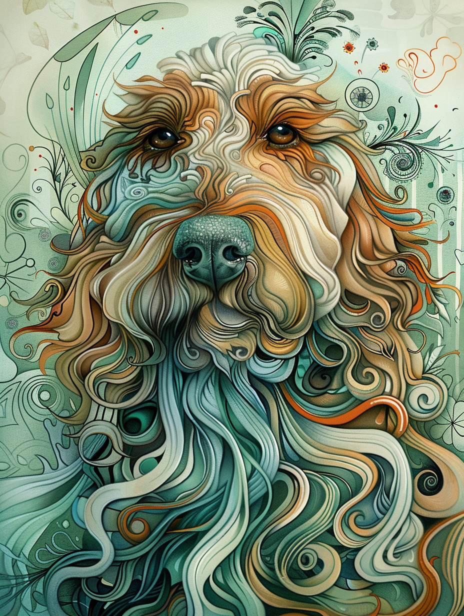Poster of Goldendoodle dog Expressive surreal Poster # F024268