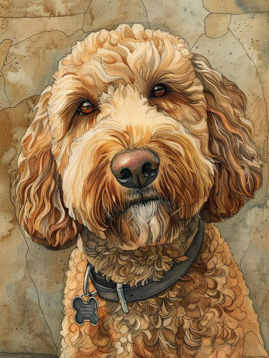 Poster of Goldendoodle dog Expressive surreal Poster # F024283