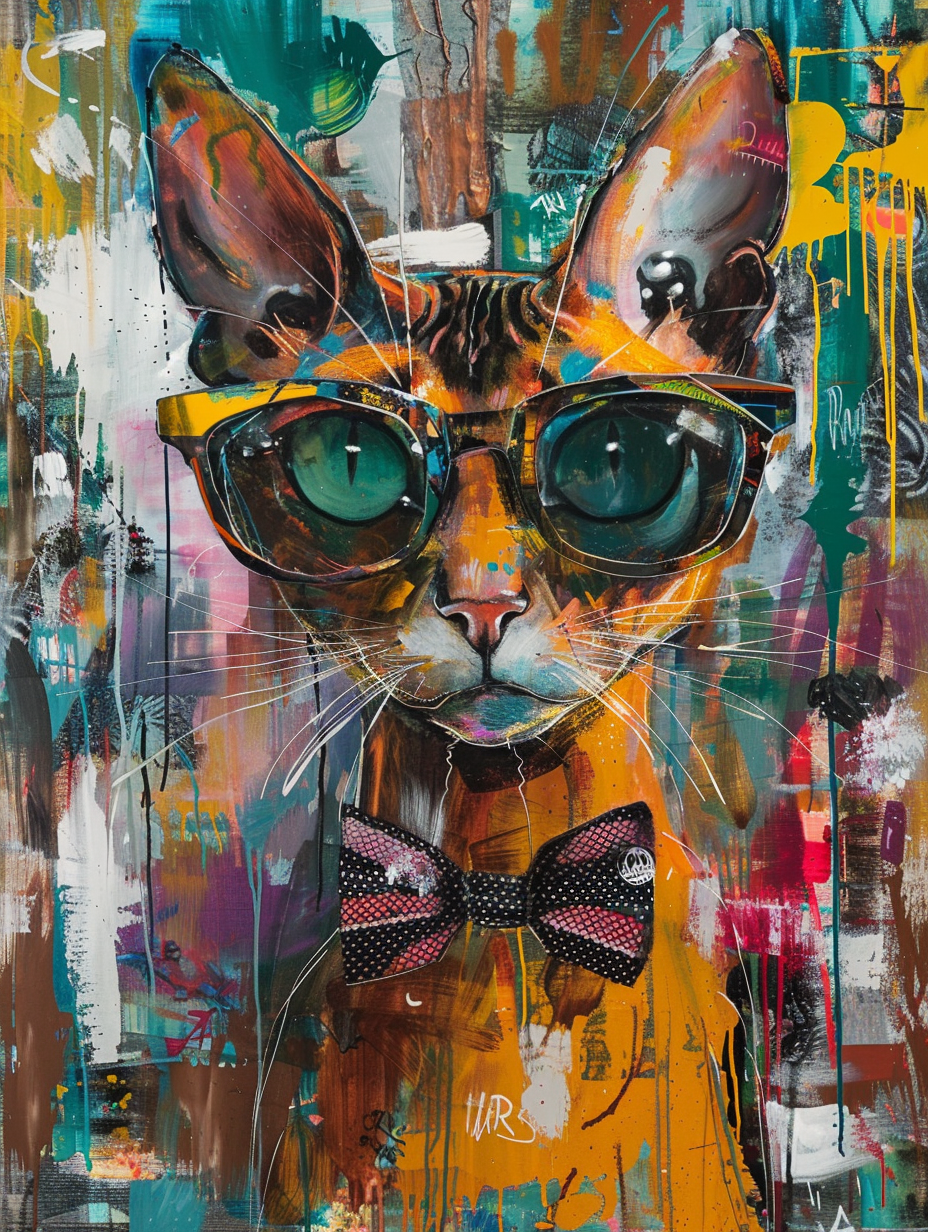 Colorful space Somali cat with a bow tie Expressive surreal Poster # F024328