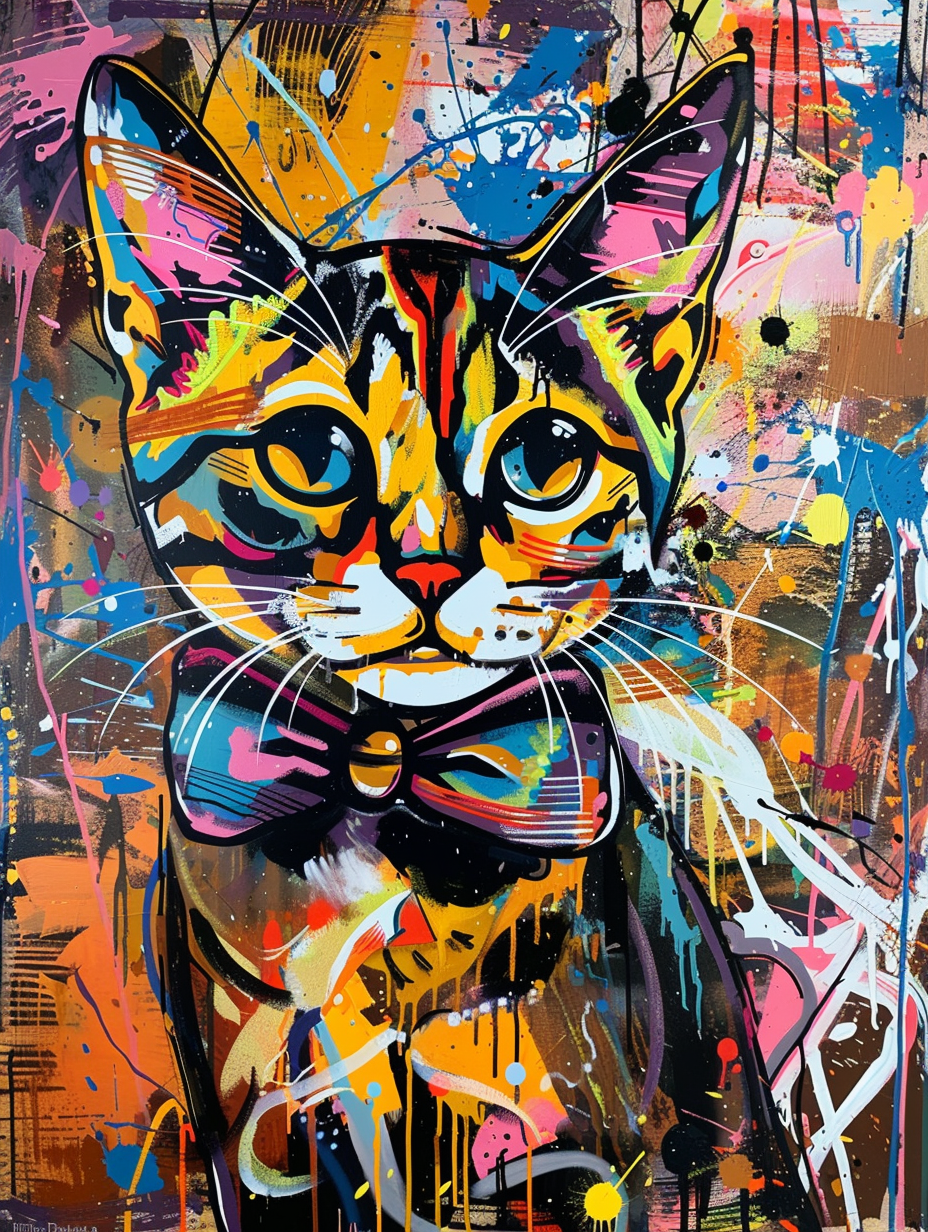 Colorful space Abyssinian cat with a bow tie Expressive surreal Poster # F024340