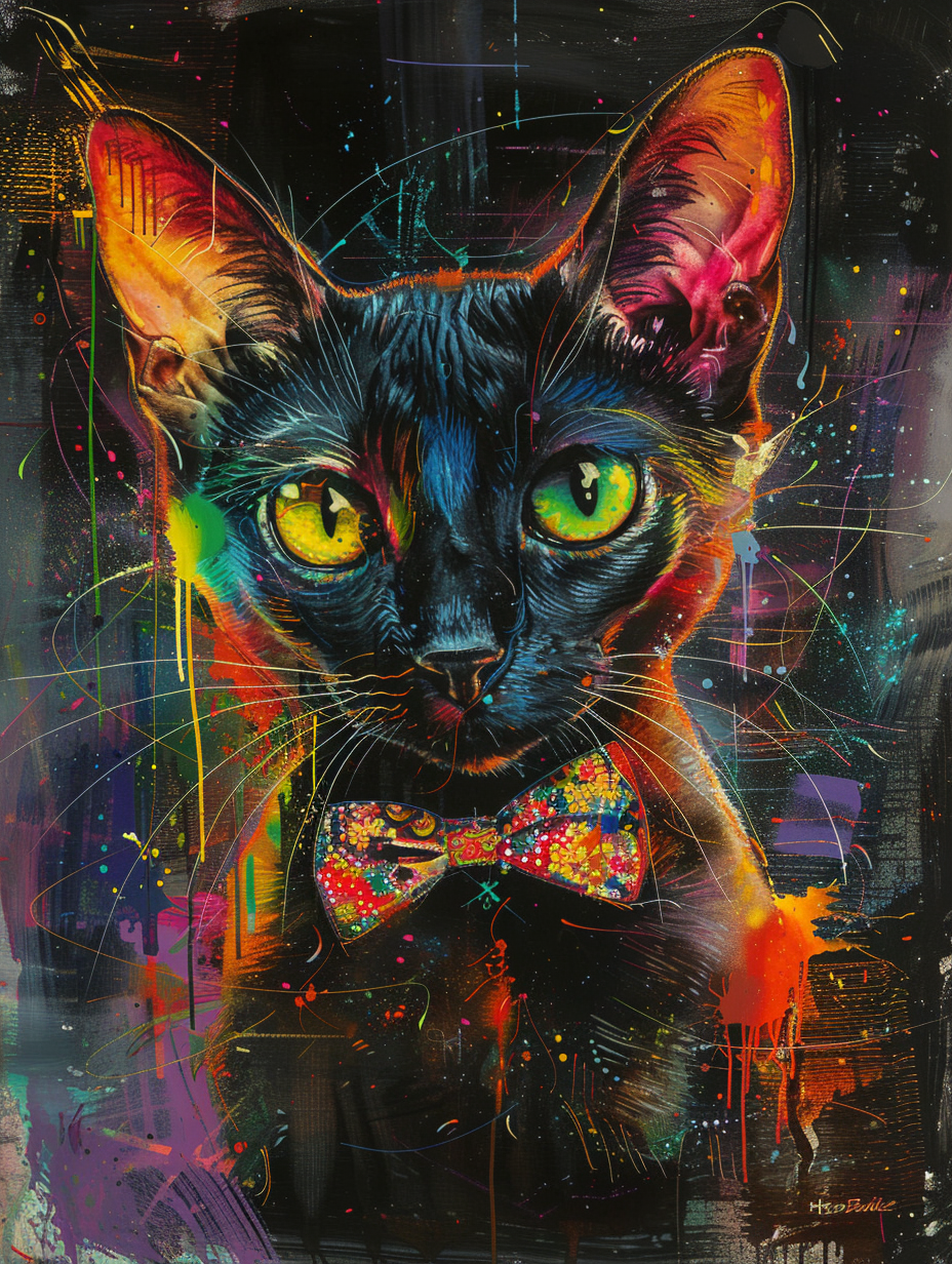 Colorful space Abyssinian cat with a bow tie Expressive surreal Poster # F024364