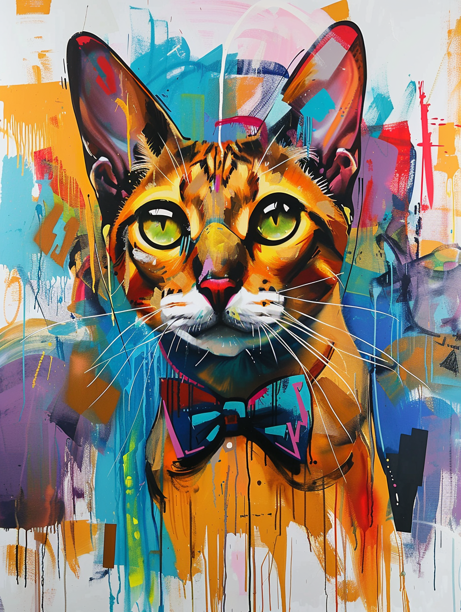 Colorful space Somali cat with a bow tie Expressive surreal Poster # F024380