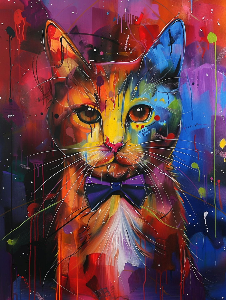 Colorful space Somali cat with a bow tie Expressive surreal Poster # F024384
