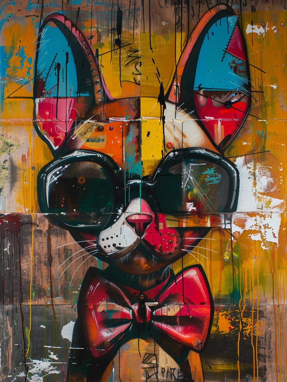 Colorful space Sphynx cat with a bow tie Expressive surreal Poster # F024385