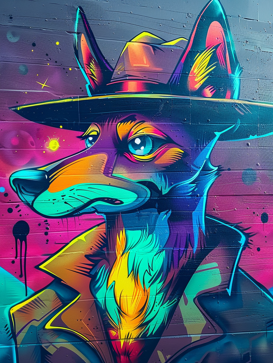 Colorful space Siberian Husky dog with a hat Expressive surreal Poster # F024405
