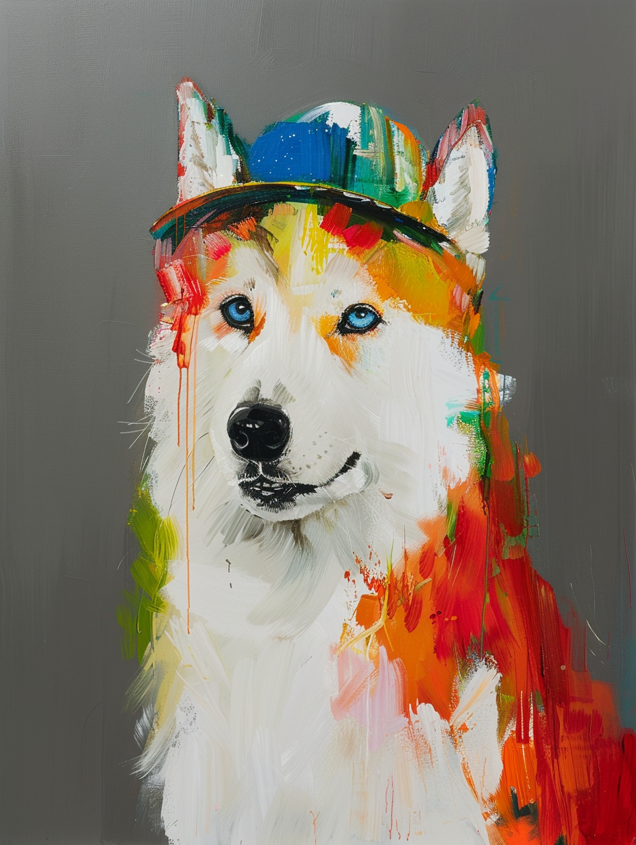 Colorful space Siberian Husky dog with a hat Expressive surreal Poster # F024442