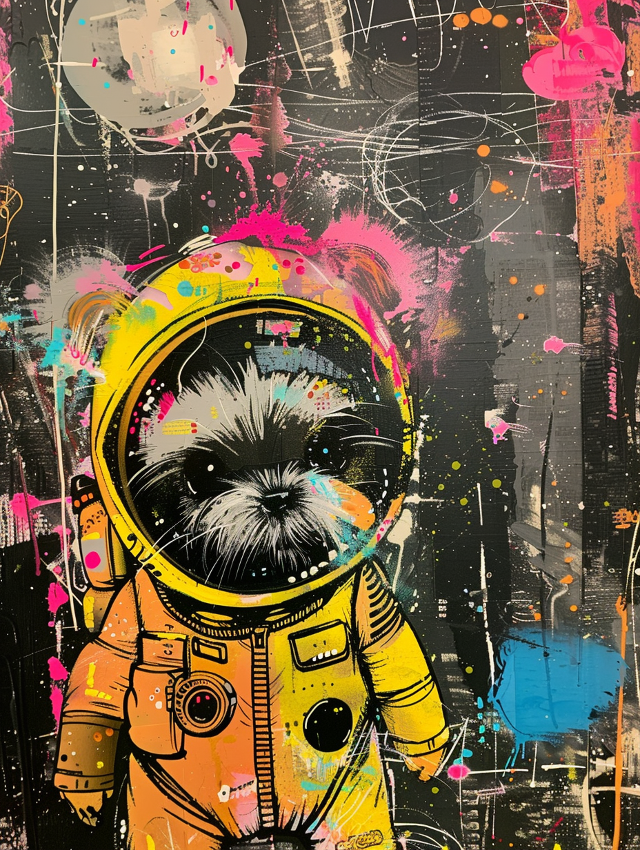 colorful space Yorkshire Terrier dog with a hat Expressive surreal Poster # F024506