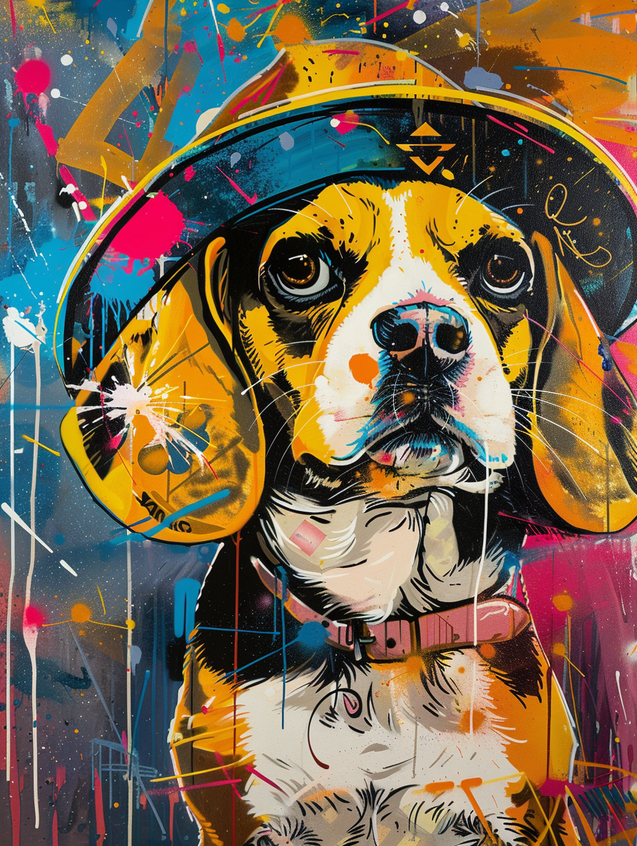 Colorful space Beagle dog with a hat Expressive surreal Poster # F024513