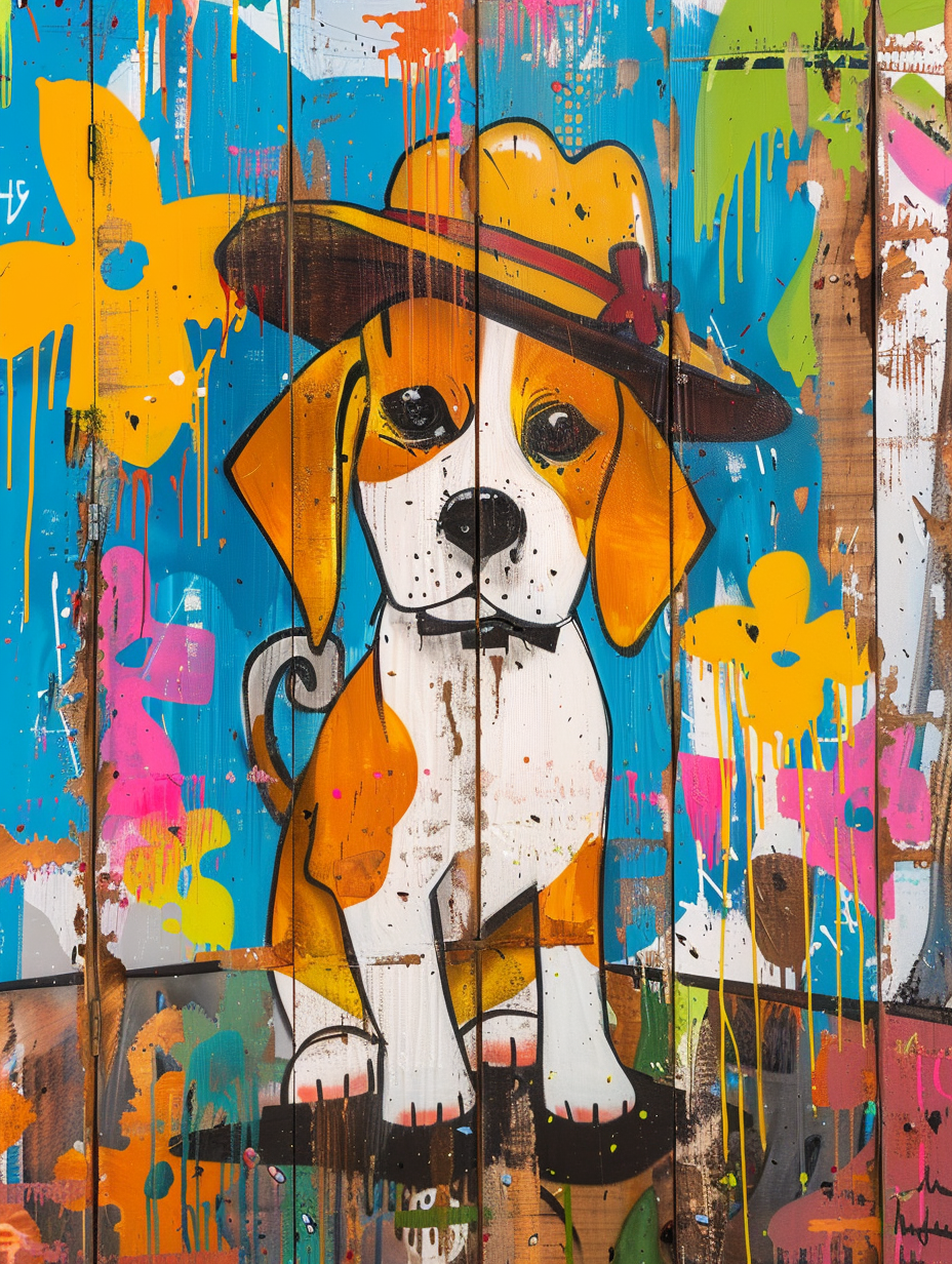Colorful space Beagle dog with a hat Expressive surreal Poster # F024525