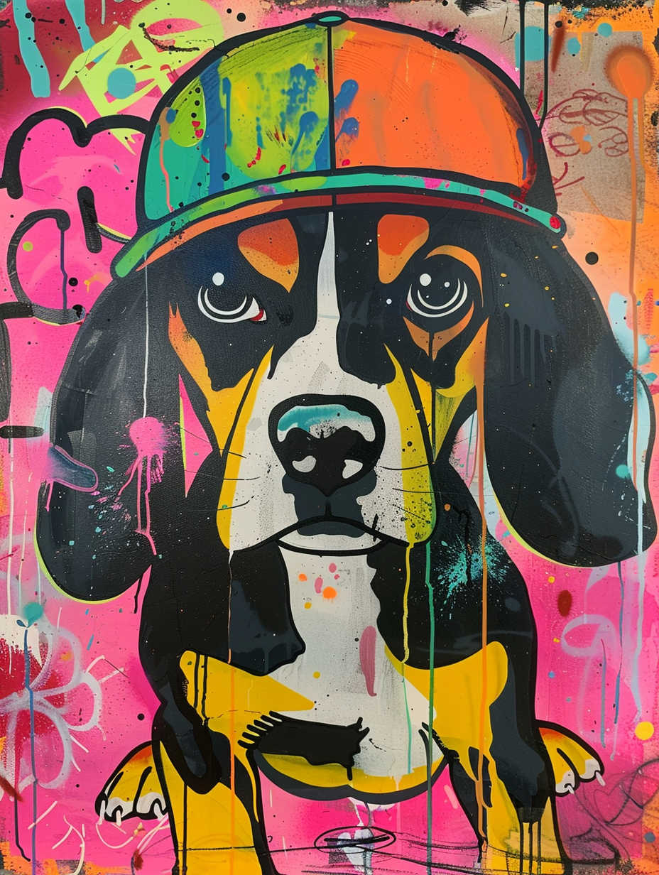 Colorful space Beagle dog with a hat Expressive surreal Poster # F024533