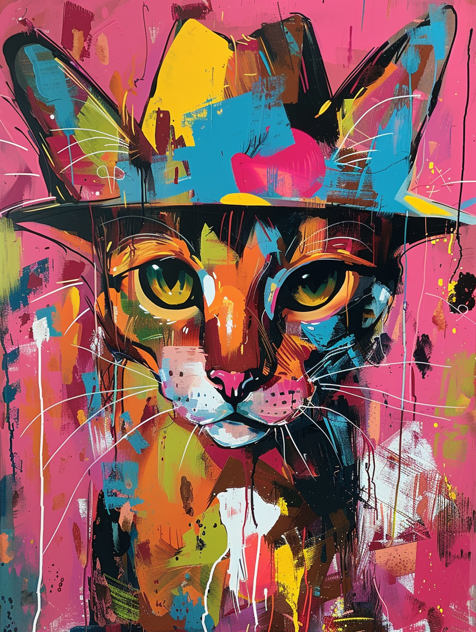 Colorful space Somali cat with a hat Expressive surreal Poster # F024705
