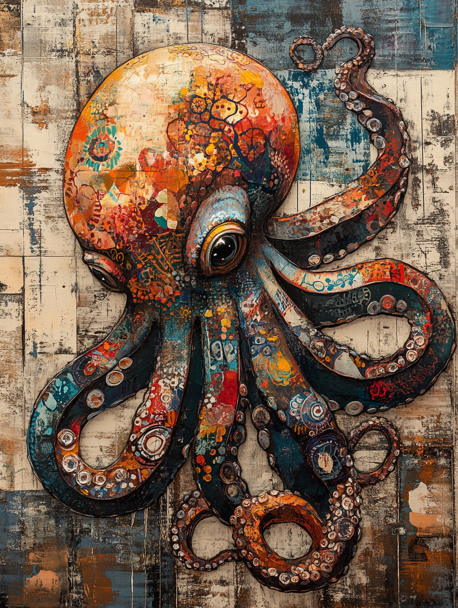 The silhouette of a octopus with an abstract color Expressive surreal Poster # F024818