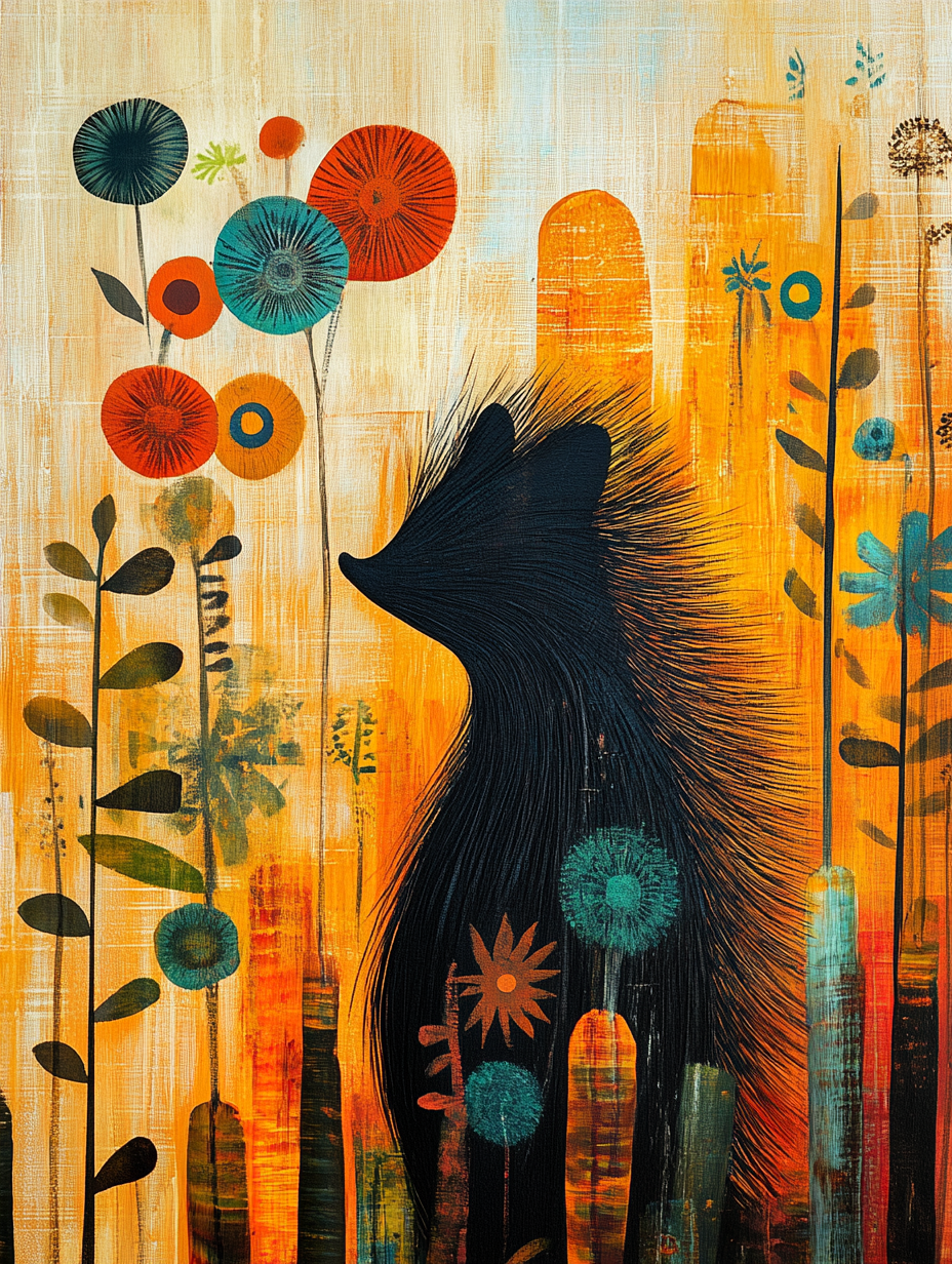 The silhouette of a hedgehog with an abstract colo Expressive surreal Poster # F024820