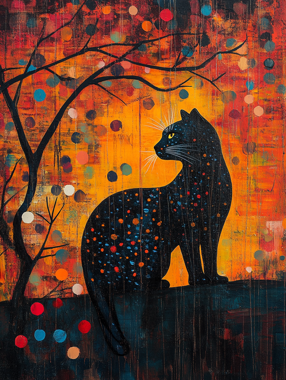 The silhouette of a leopard with an abstract color Expressive surreal Poster # F024829