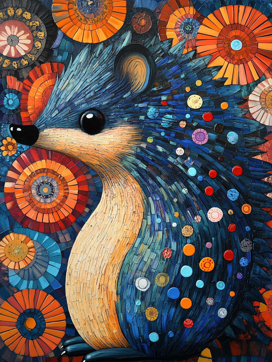 The silhouette of a hedgehog with an abstract colo Expressive surreal Poster # F024830