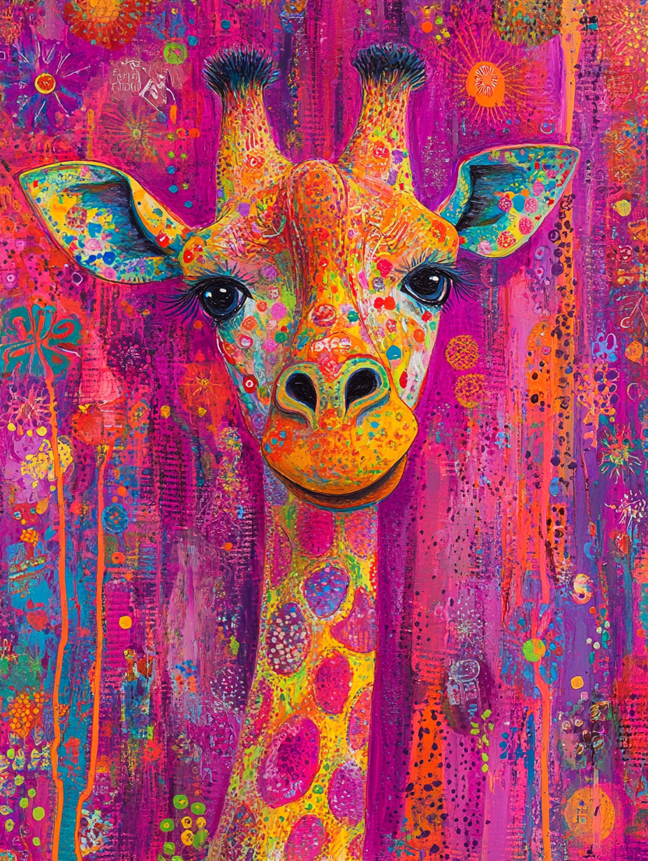 the silhouette of a giraffe with an abstract color Expressive surreal Poster # F024834