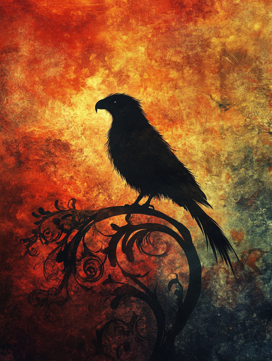 The silhouette of a eagle with an abstract colorful Expressive surreal Poster # F024837