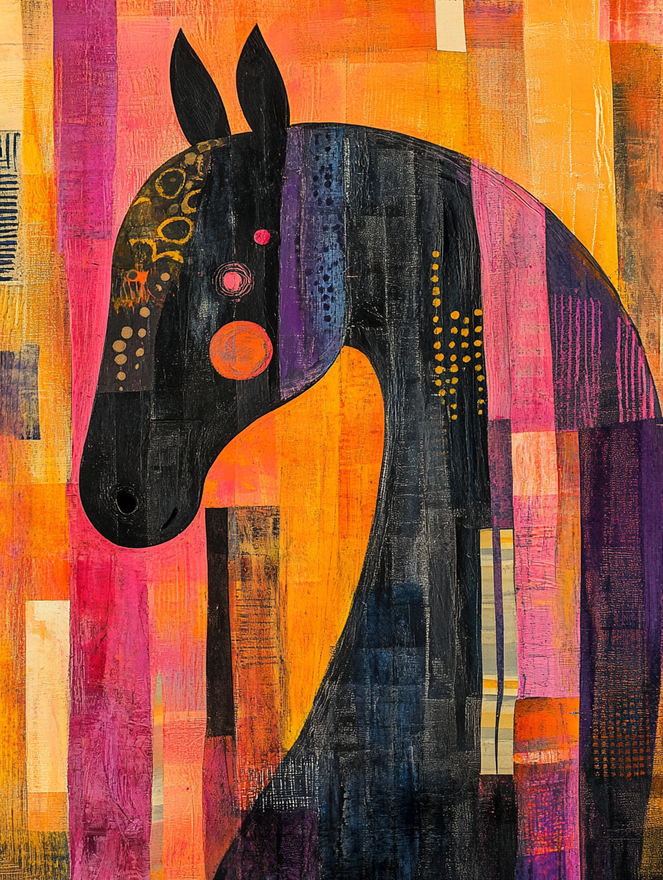 The silhouette of a horse with an abstract colorful background Expressive surreal Poster # F024838
