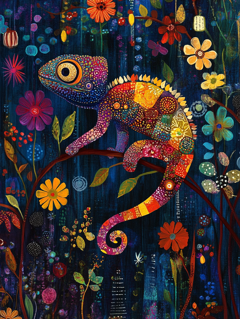 The silhouette of a chameleon with an abstract col Expressive surreal Poster # F024841