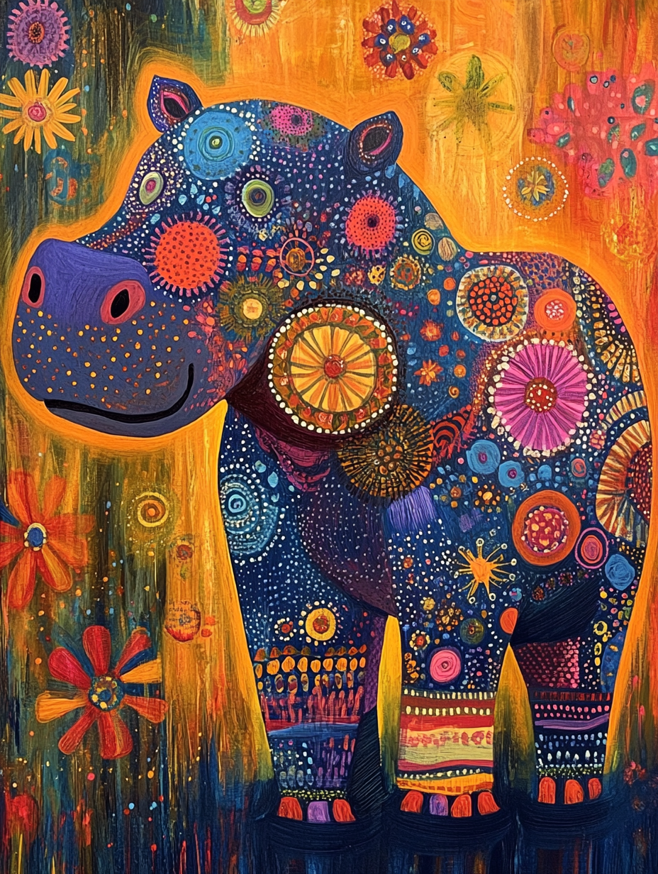 The silhouette of a Hippopotamus with an abstract Expressive surreal Poster # F024844
