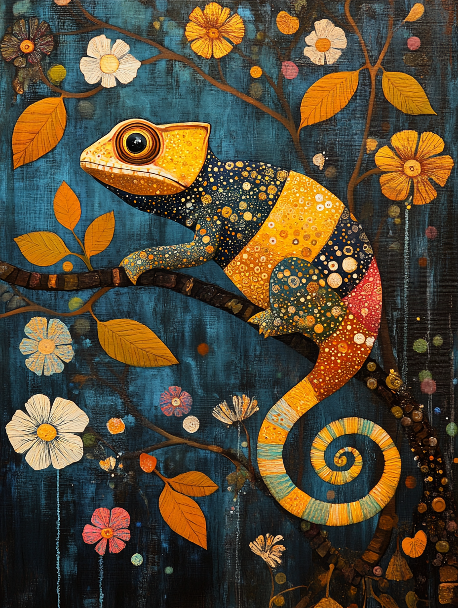 The silhouette of a chameleon with an abstract col Expressive surreal Poster # F024847