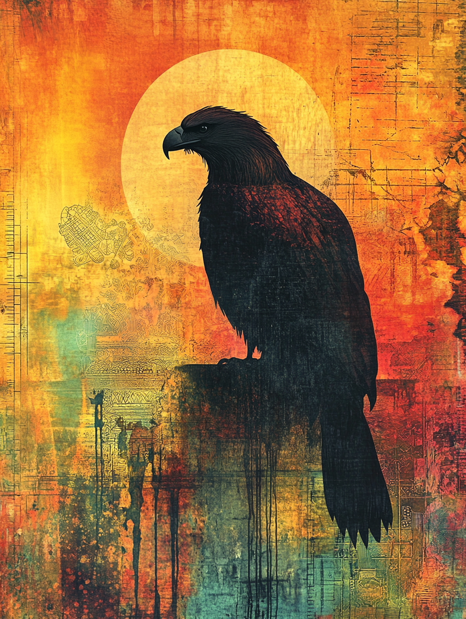 The silhouette of a eagle with an abstract colorful Expressive surreal Poster # F024851