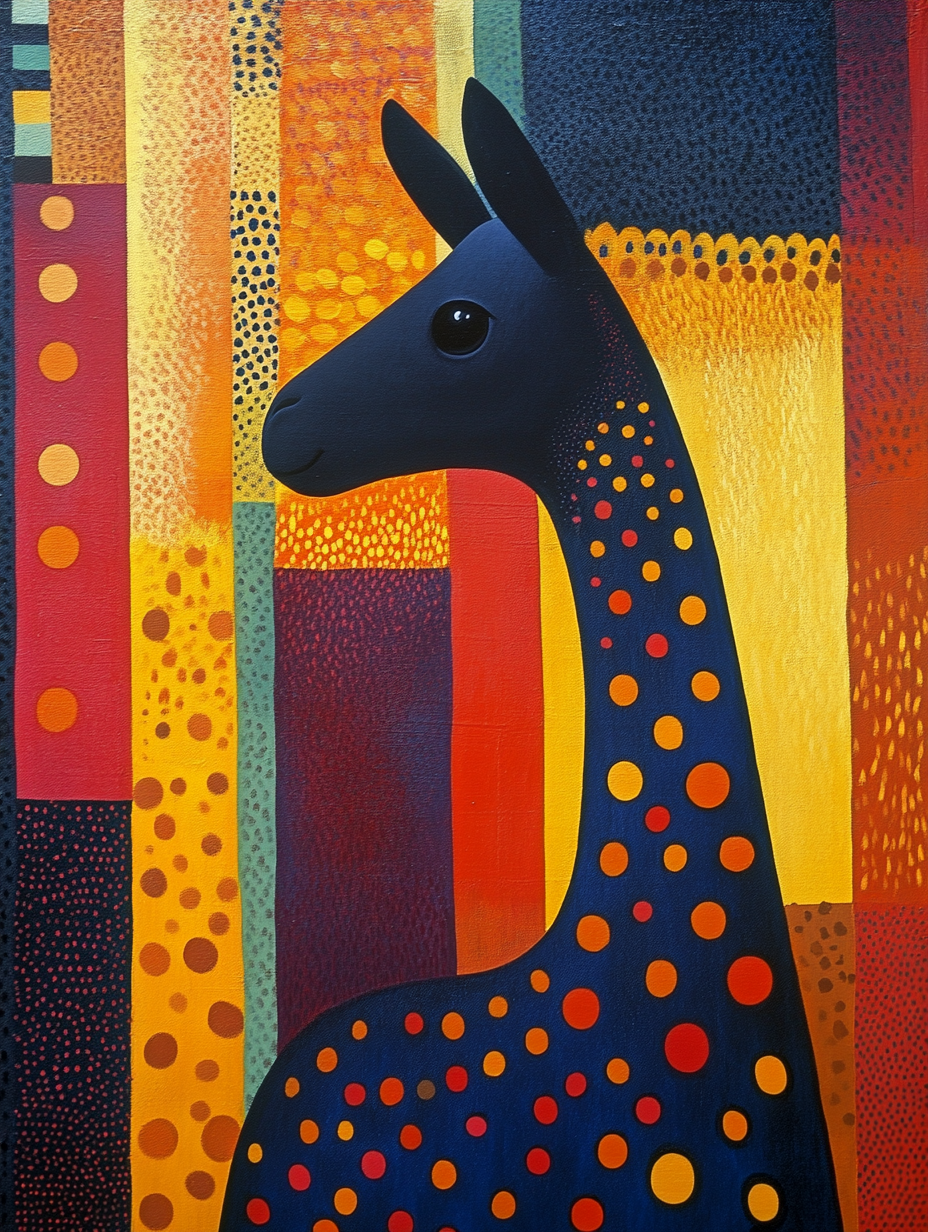 the silhouette of a alpaca with an abstract colorf Expressive surreal Poster # F024856
