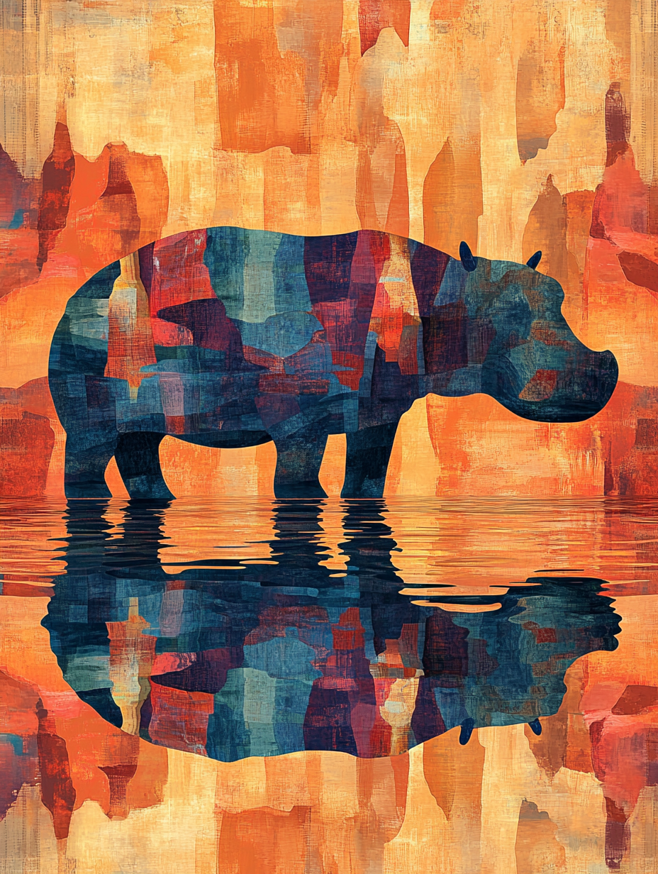 The silhouette of a Hippopotamus with an abstract Expressive surreal Poster # F024857