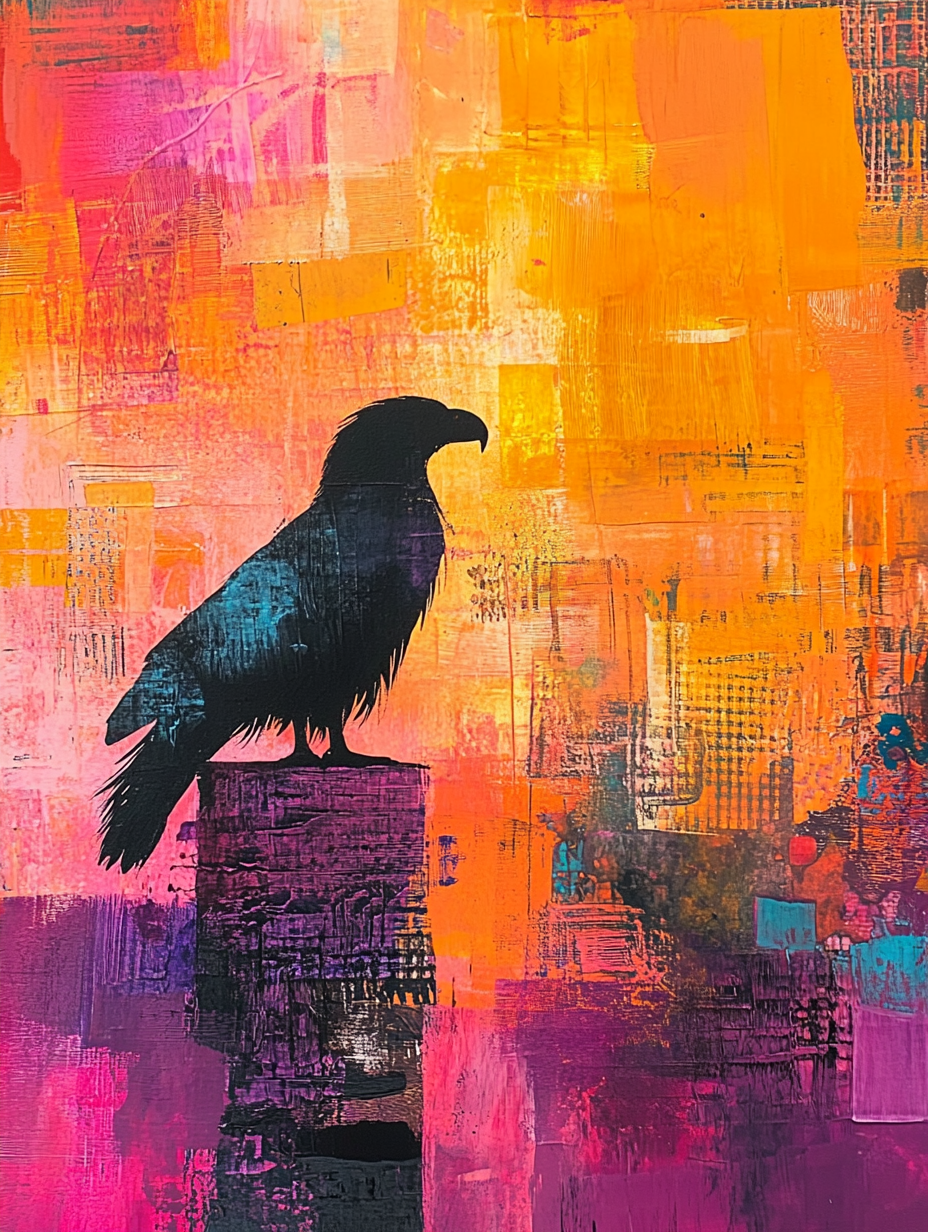 The silhouette of a eagle with an abstract colorful Expressive surreal Poster # F024860