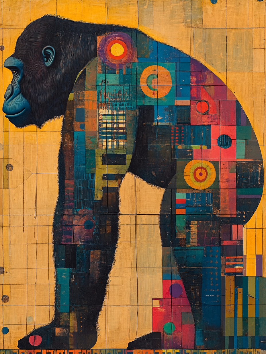 The silhouette of a gorilla with an abstract color Expressive surreal Poster # F024861