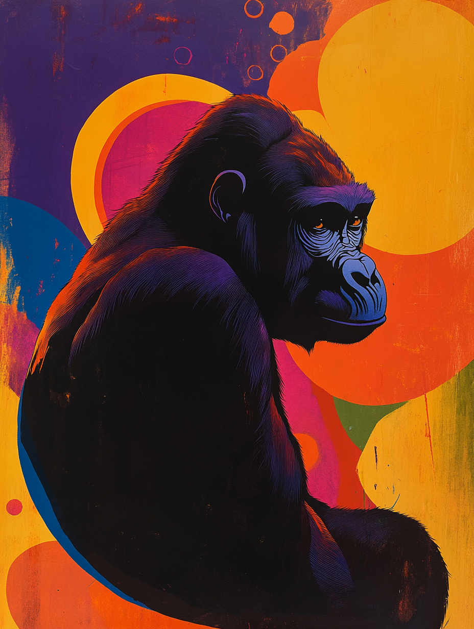 The silhouette of a gorilla with an abstract color Expressive surreal Poster # F024866