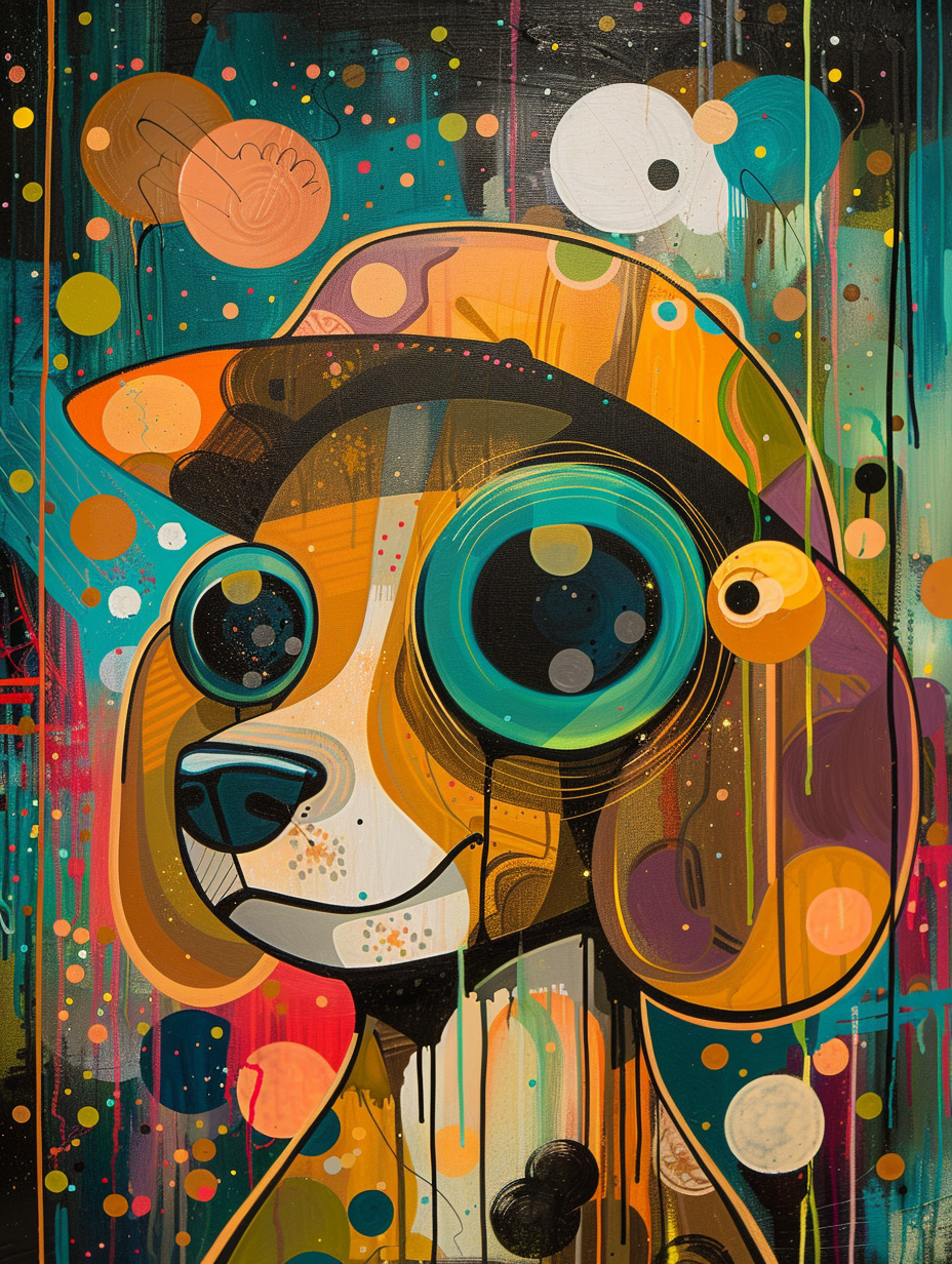 Colorful space Beagle dog with a hat Expressive surreal Poster # F025043