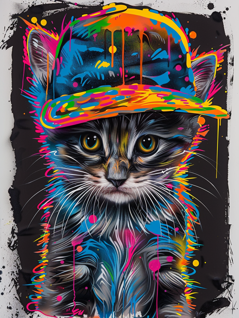 colorful space American Shorthair cat with a hat Expressive surreal Poster # F025232