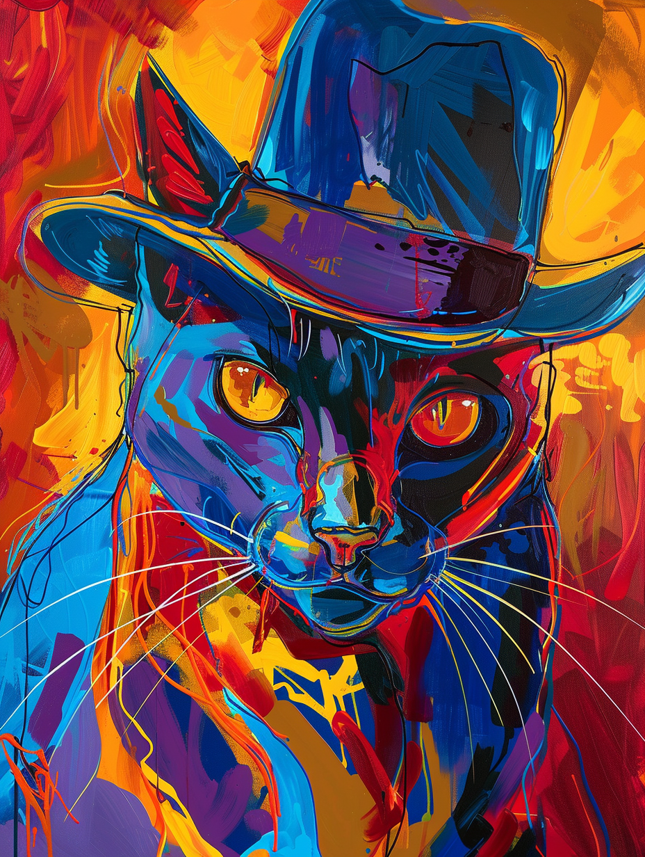 Colorful space Tonkinese cat with a hat Expressive surreal Poster # F025249