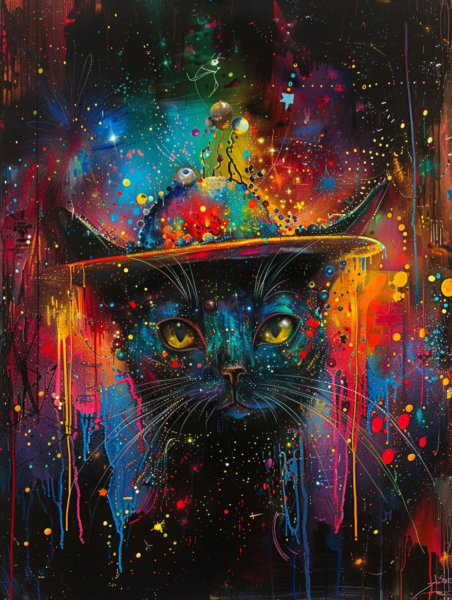 colorful space Siamese cat with a hat Expressive surreal Poster # F025267