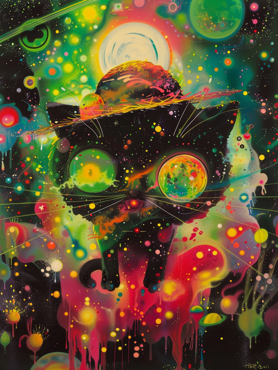 Colorful space Tonkinese cat with a hat Expressive surreal Poster # F025280