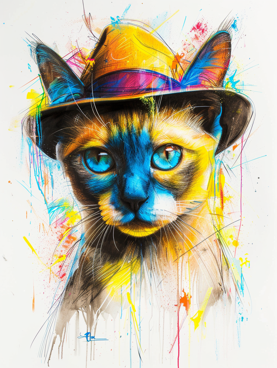 Colorful space Tonkinese cat with a hat Expressive surreal Poster # F025292