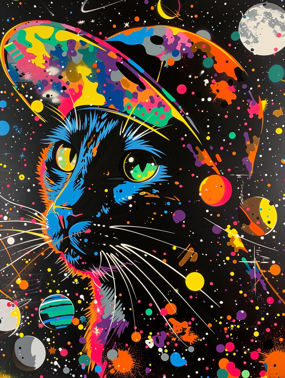 colorful space Siamese cat with a hat Expressive surreal Poster # F025320