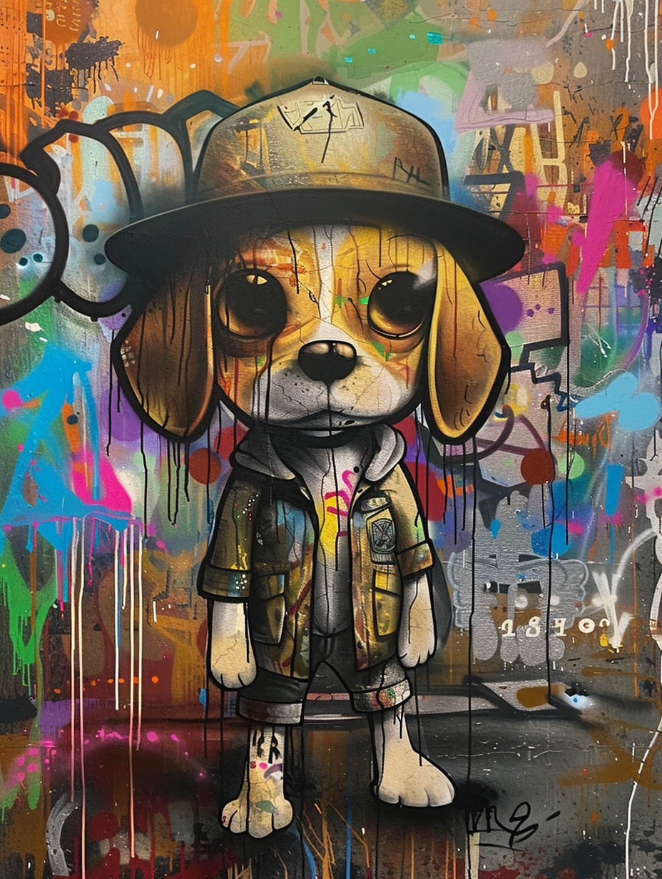 colorful space Beagle dog with a hat Expressive surreal Poster # F025421